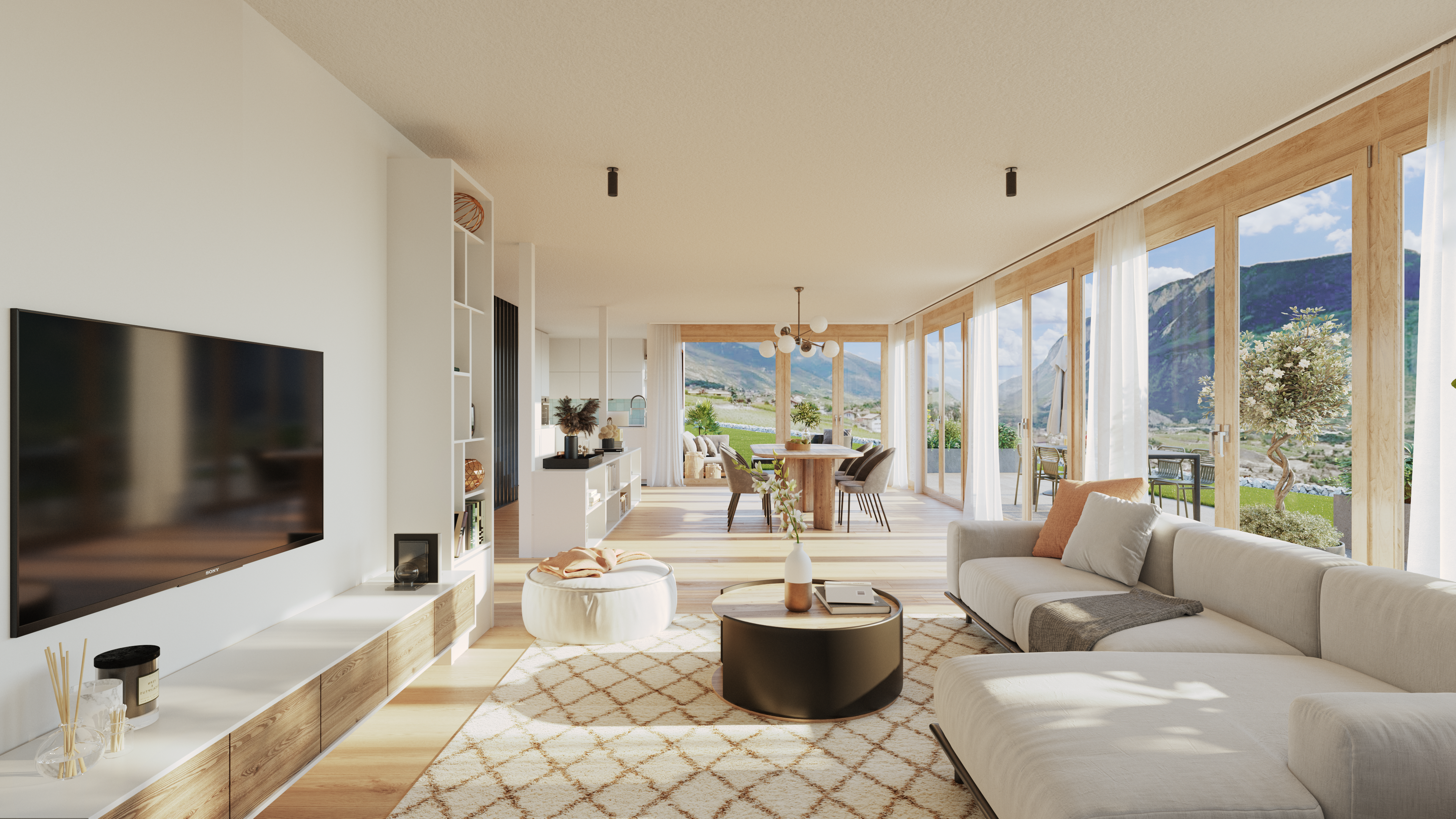 Ce nouveau projet complète une zone d’habitation à faible densité, dans un quartier résidentiel et offre un cadre de vie agréable, tout en étant à proximité des commodités telles que l’école primaire et l’UAPE de Veyras, l’église et les terrains de sport dans les abords.